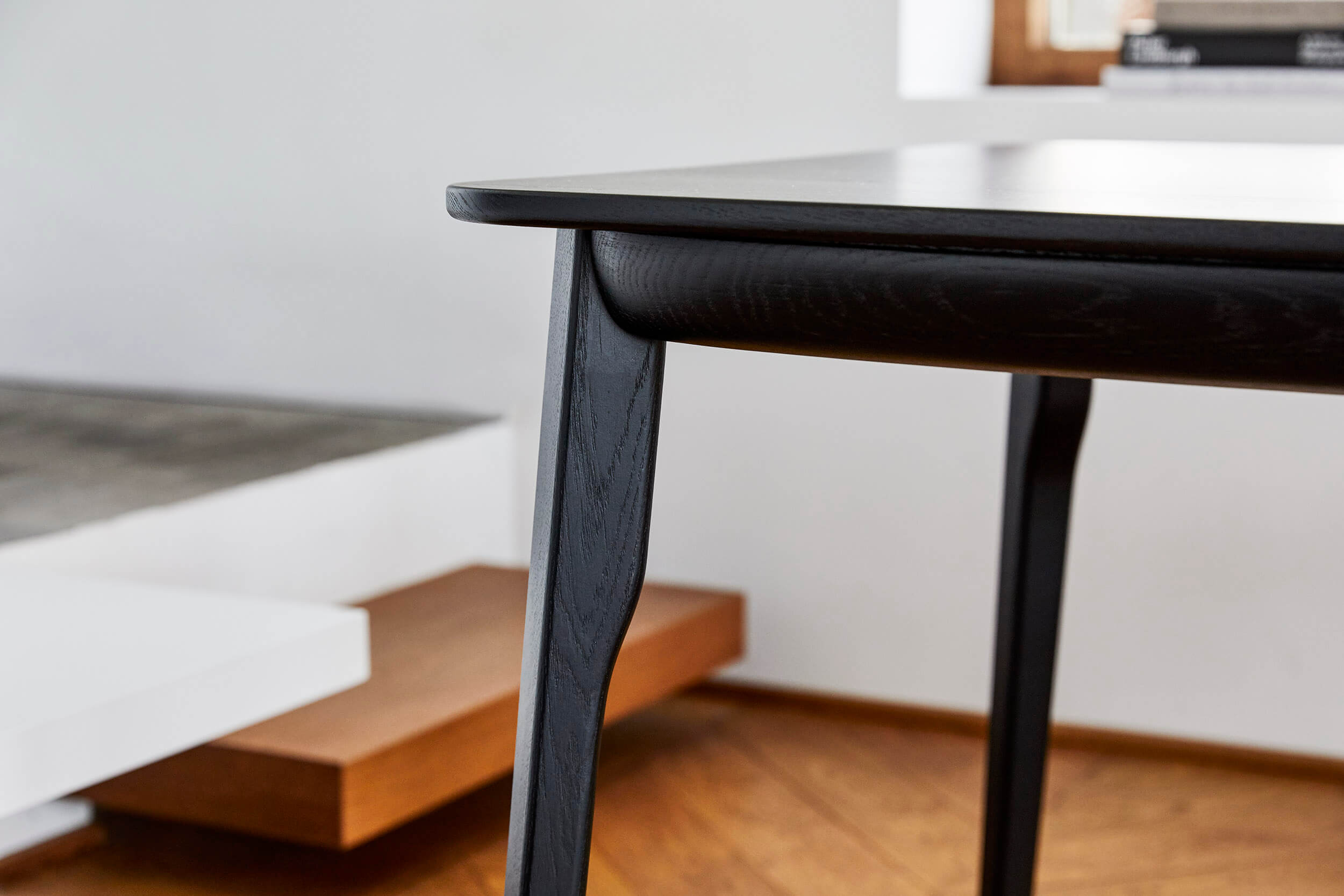 2019 - Following the Back Me Up dining chair, Brekveld was asked to design a matching table. The final design of the table incorporates shape details that are related to the dining chairs. This is evident in the structured framework of the table and the way the legs are received by these supports. The tabletop has a gentle form with rounded lines and corners. The soft, almost feminine design can also be seen in the elegant shaped legs of the table.