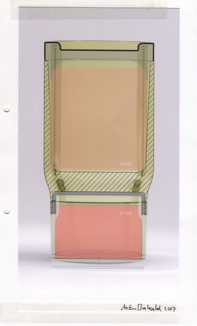 2007 - After designing the first series of products for RoyalVKB, Brekveld received a new request from the brand to design a lunch container that would keep the ingredients fresh. The resulting Fresh Traveler features an insulated double-walled compartment at the top and a simple container that can be screwed on at the bottom. It is ideal for carrying ingredients separately, such as yogurt and muesli or soup and croutons, and so on. During production, this design proved to be challenging due to the combination of different materials and complex techniques. However, thanks to its subtle design, the user hardly notices the complexity, only the convenience.