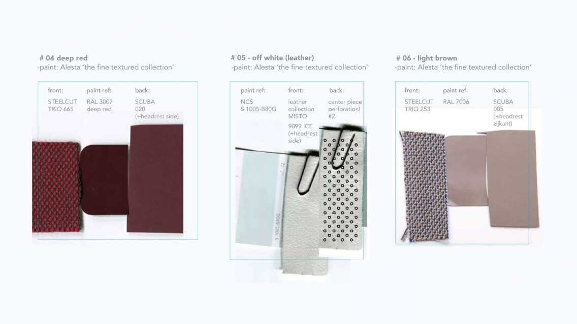 The Vik Loungechair is available in nine colors combinations. It is upholstered in partially perforated leather or fabric. The fabric that is used on the seat does not have a pronounced weaving pattern, which means it doesn't look like textile.